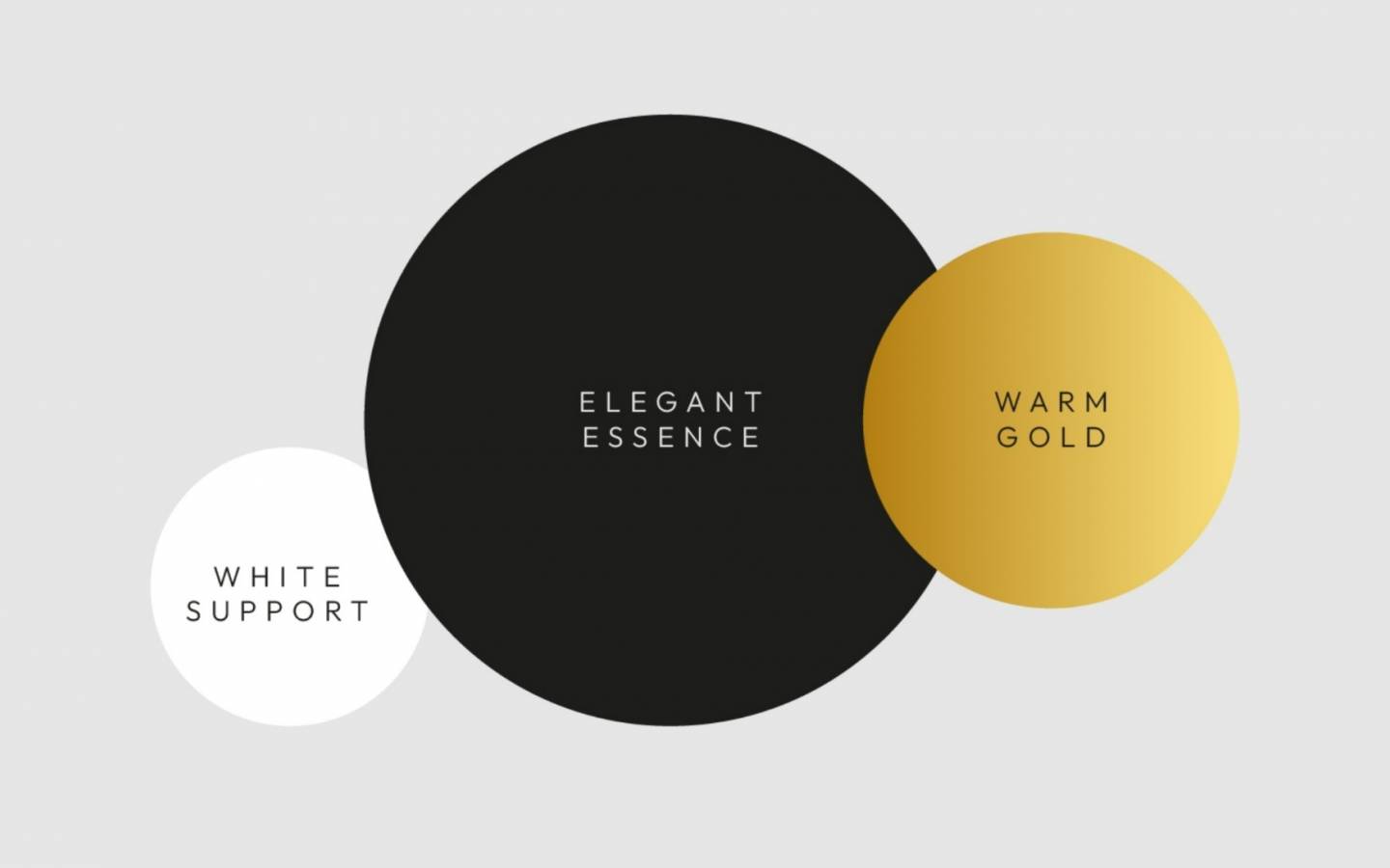 - A colour palette that blends black and gold, embodying luxury and exclusivity