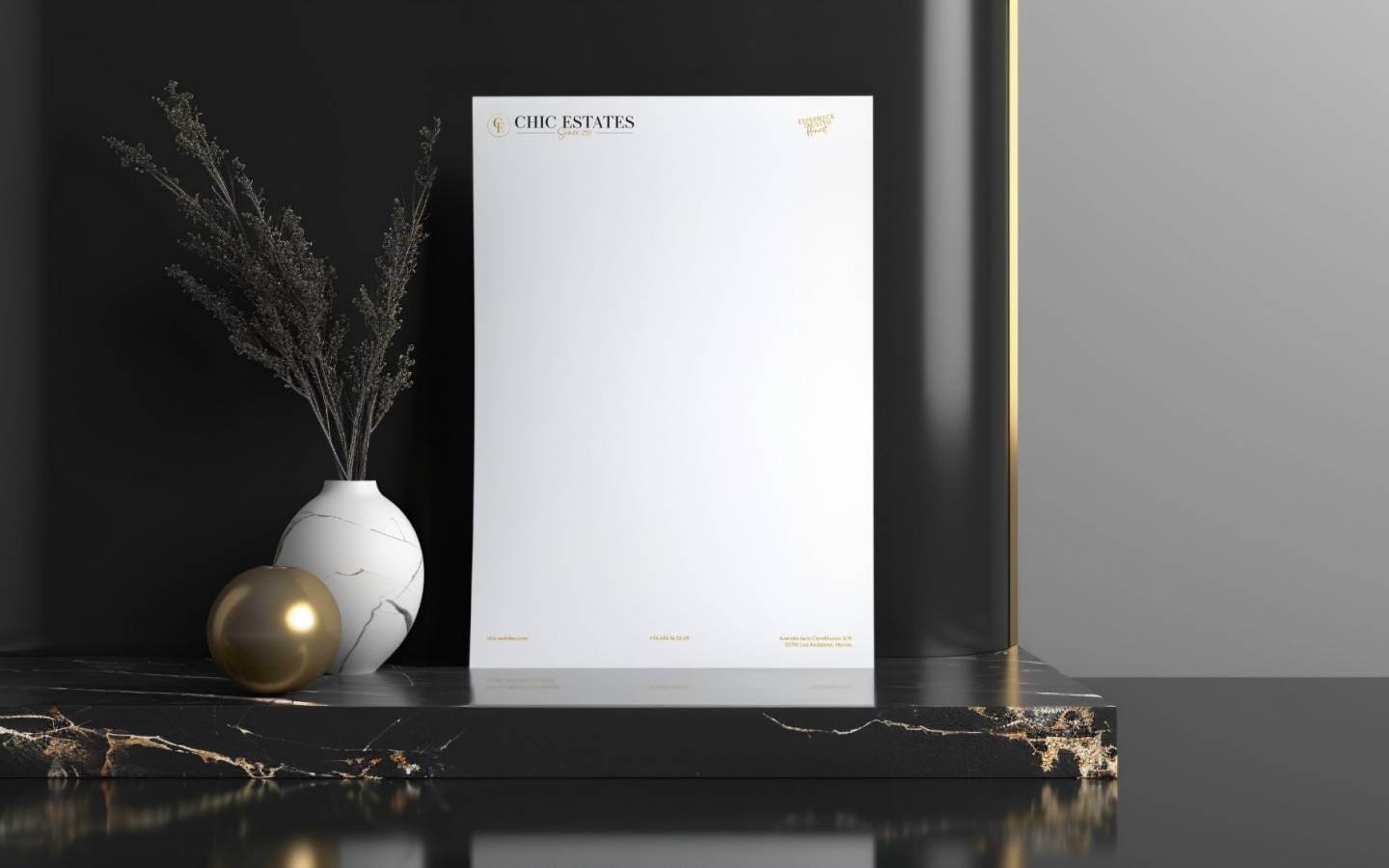 - Modern and sophisticated typography: The font combination highlights Chic Estates' unique personality, using three typefaces that create a harmonious contrast: an elegant and sophisticated typeface for the logo and a warm and friendly typeface for the text.