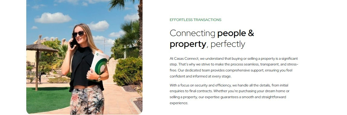 Casas Connect has its office in Algorfa and offers a carefully curated selection of properties in the Southern Costa Blanca, including modern villas, resale apartments, cosy bungalows and new-build homes. Their proposition is clear: to offer a transparent, human and efficient real estate experience, something we also wanted to reflect on their website.