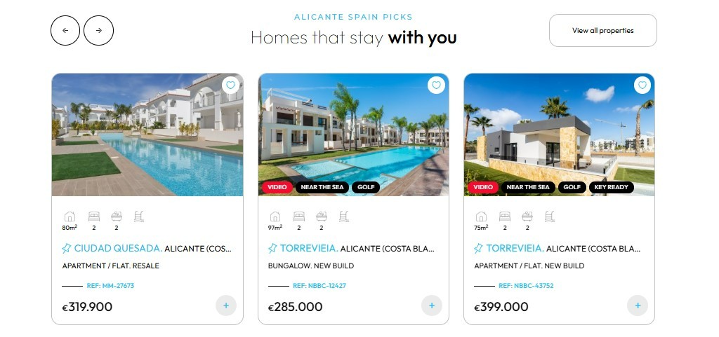 We identified the most competitive developments with the highest number of units in Alicante and placed them front and centre, giving them the prominence they deserved. Meanwhile, developments in secondary areas such as Costa Cálida or Costa del Sol—although still relevant—were moved further down, keeping the focus where it truly matters.