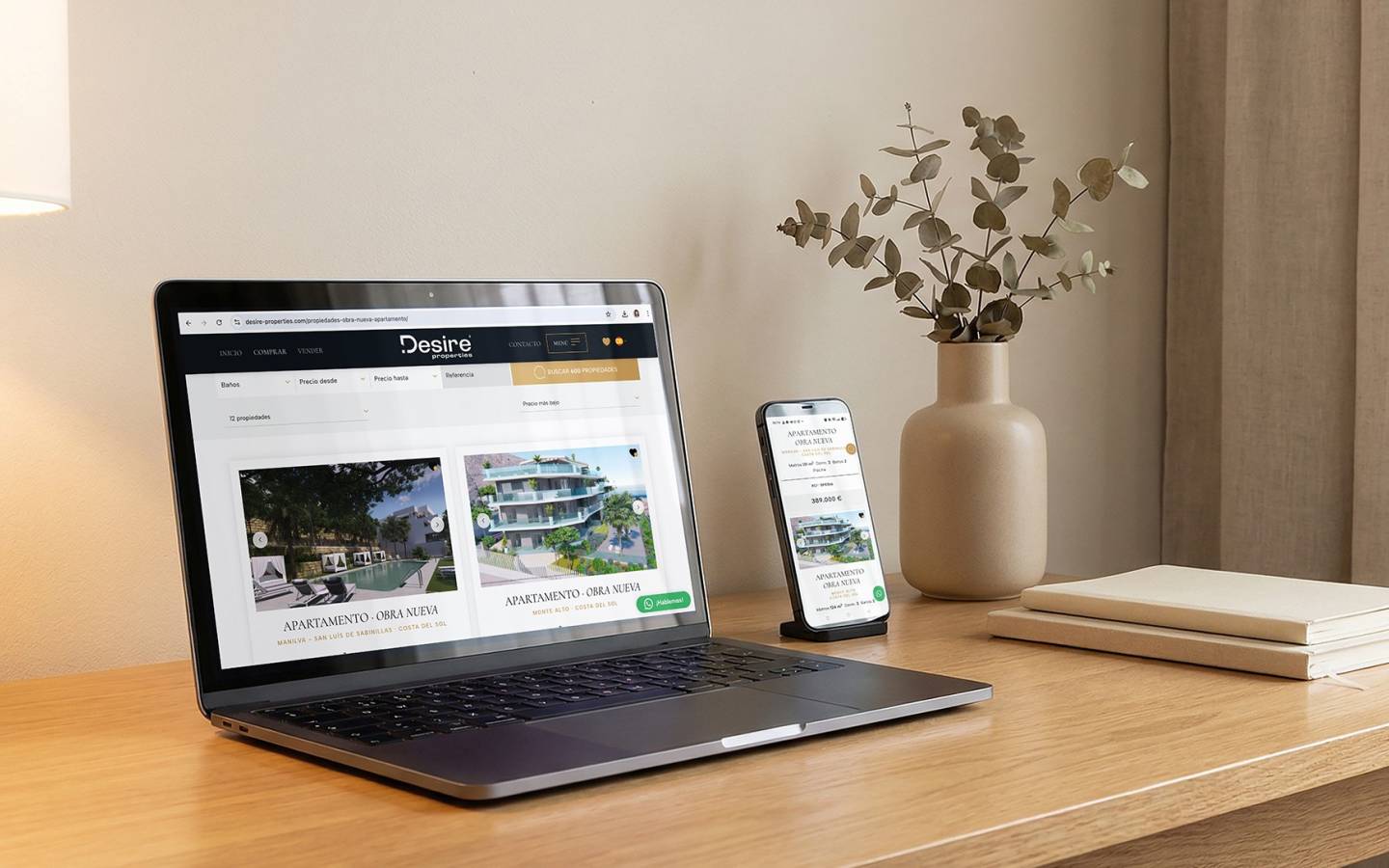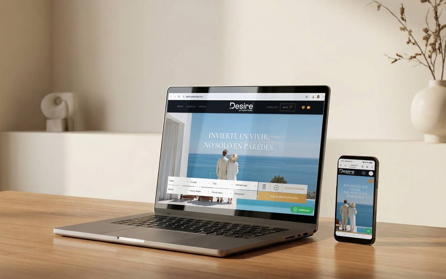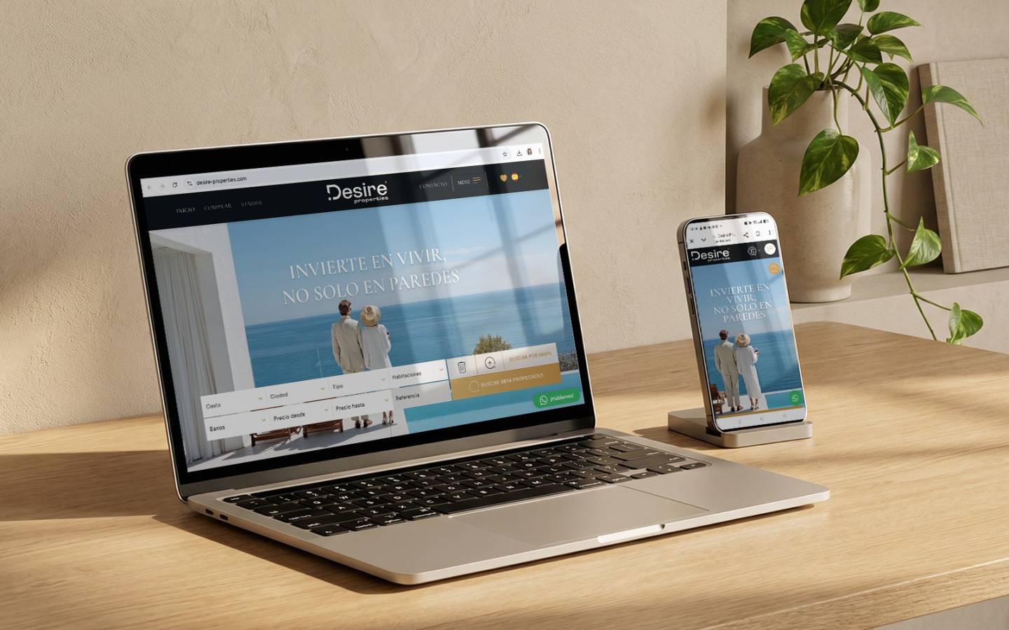 Desire Properties buscaba algo muy claro: una web altamente visual, moderna y ágil, que reflejara la calidad de su cartera y transmitiera profesionalidad a públicos muy distintos.