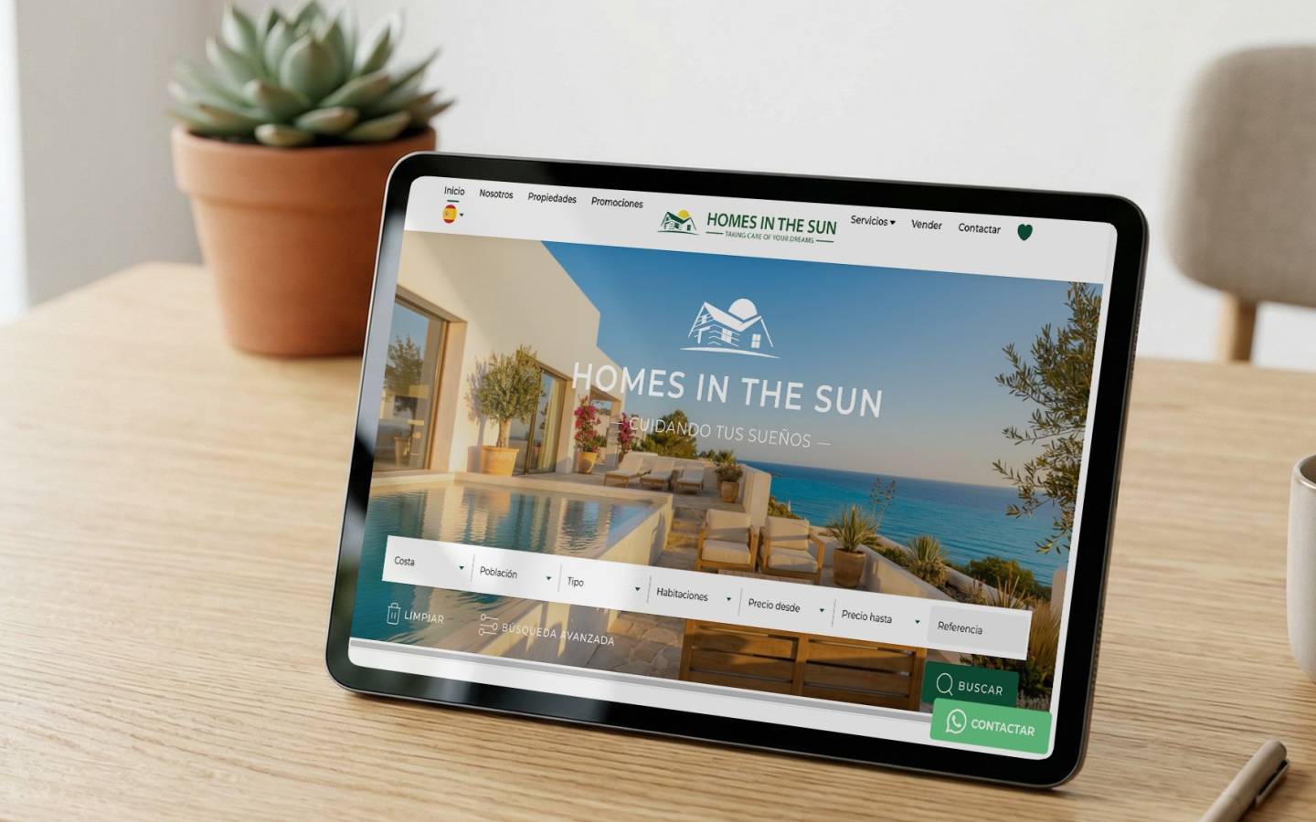 Uno de los mayores aciertos de este proyecto es que no se ha construido desde una idea genérica de “web inmobiliaria”, sino desde la realidad concreta de Homes in the Sun.